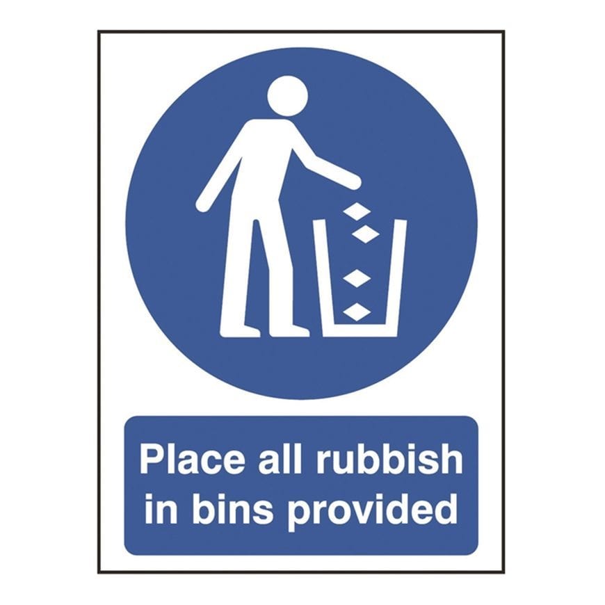 Place All Rubbish In Bins Provided Sign